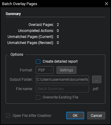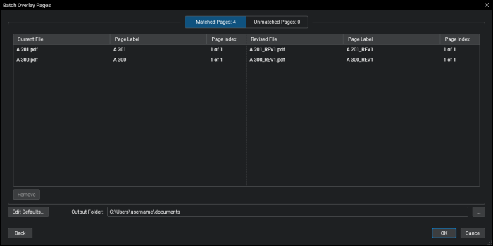 The Batch Overlay lets you create an overlay comparison for multiple files or a multi-page file in one batch process. The Batch Overlay feature is discussed here. There is also a non-batch version of Overlay.