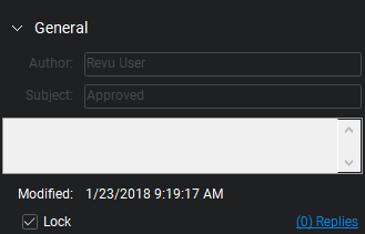 Use the Stamp Tool to add "rubber stamp" comments on the drawing. A text stamp can be used to indicate that a generated PDF is "DRAFT," "FOR REVIEW," and so on. Stamps are placed on a PDF as a markup and, as such, have editable appearance properties and show up on the Markups list.