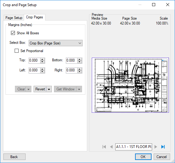 - Select OK to open the Crop and Page Setup dialog box.