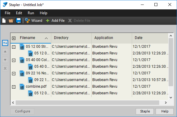 Combine files in RevuWhen selected, the Stapler wizard opens with the selected files already populated in the source file window.
