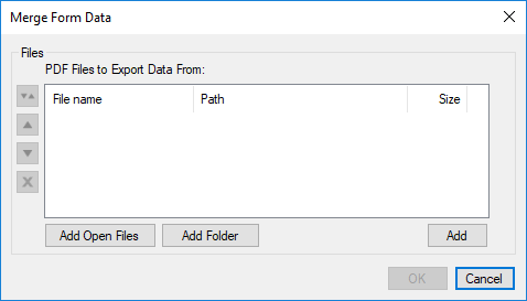 - Once files are added, they can be sorted, arranged, or removed using the buttons on the left. Data will be added to the merged data report from the forms in the order shown in this dialog box.