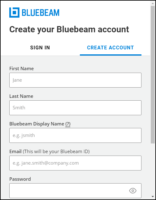 Before you can log into a Studio server, you must create an account on it, be it one of Bluebeam's open, cloud-based Studio servers or an enterprise server that has been previously configured. Accounts are not shared across servers: if you need to use more than one Studio server, create an account on each (you can use the same login credentials on multiple servers if you wish).