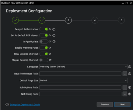 Si necesita la Creación de Configuración y activos personalizados, deberá instalar Revu manualmente en una máquina y consultar la Guía de administración de Revu Empresa para conocer las mejores prácticas para exportar, recopilar y preparar estos elementos.
