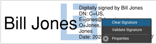 To clear your digital signature, either permanently or in order to make any needed changes and reapply it, right-click the signature and select Clear Signature.