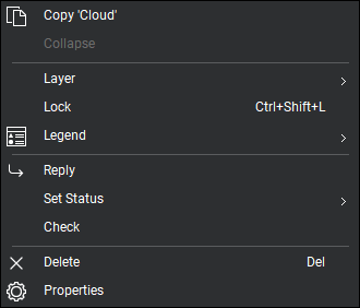 Reply: Replies to the selected markup. Replies appear on a new indented row below the markup in question.