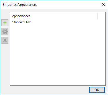 Select the desired digital identity and click Manage Appearances. The <name> Appearances dialog box appears.