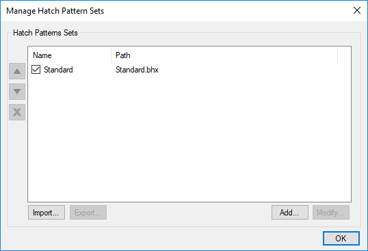 Hatch patterns can be used to fill enclosed markups (for example, rectangles, ellipses and polygons) and measurements (like area and volume). Revu comes preloaded with several default hatch patterns and a hatch pattern editor allowing users to create their own patterns. Additionally AutoCAD patterns (.pat files) may be imported into Revu. Hatch patterns are collected in sets for easy organization. After a new hatch pattern is created, it will appear in the Hatch lists in the Properties Toolbar, Appearance Settings Toolbar and the Properties panel.