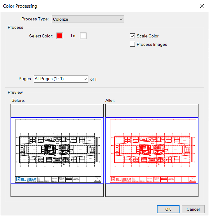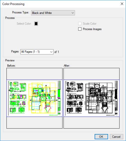 - Scale Color: Clear Scale Color to process all colors to a single color. For example: Clear Scale Color and select black to create a black and white PDF.