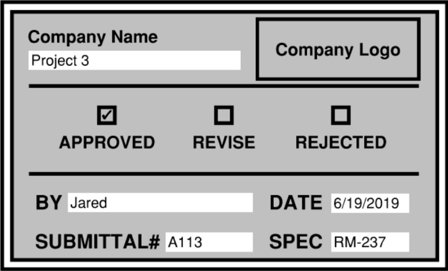 Per questo esempio, modificare il timbro Submittal_Status.pdf . - Utilizzare gli strumenti di marcatura per personalizzare il timbro. Aggiungi il nome e il logo della tua azienda, modifica il colore del testo, ecc.