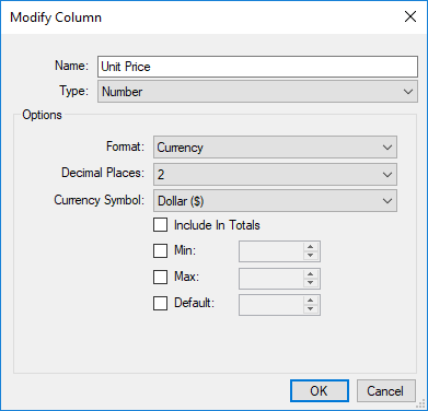 - The first column we will create will be to track the unit price of our materials. Enter a Name (for example, “Unit Price”).