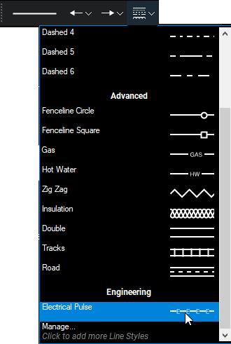 Click OK twice to get back to the main workspace. You should now have an Electrical Pulse line style available from the Style menu on the Properties Toolbar, Line Style toolbar, and the Properties panel.