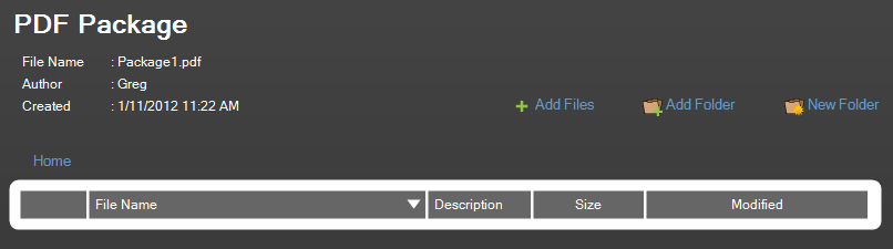 PDF packages can be sorted by any of the available columns (File Name, Description and so on). Click a column heading to sort by that column.