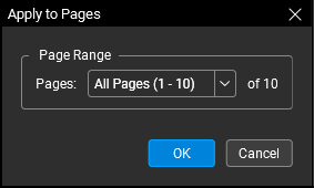 Right-click the desired markup and select Apply to Pages. The Apply to Pages dialog box appears.