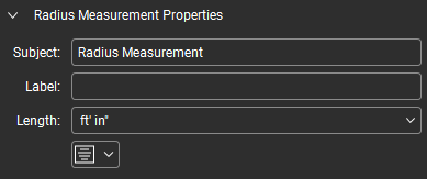 The Measurement Properties section shows properties pertaining to the selected measurement. All measurements have Subject and Label properties, and when no measurement tool is selected, that's all that you will see.