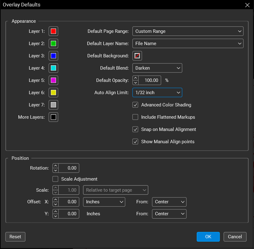 - Page Align: By default, Revu places your PDFs directly on top of each other. Recommended for drawings that have minor revisions but are otherwise the same in terms of scale and position on the page.