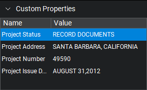 The Custom Properties section contains custom metadata fields. These fields can be edited and new fields can be added.