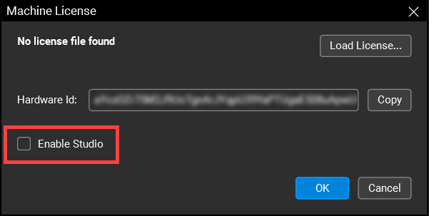 In the Machine License dialog, select Enable Studio if you are using Studio Enterprise and want to enable collaboration via Studio Sessions through your Studio Enterprise server.