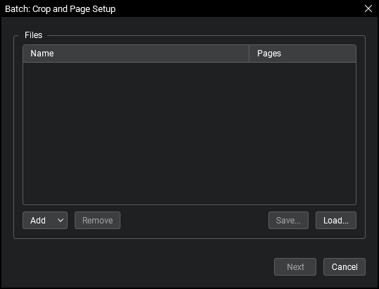 Go to Batch > Crop & Page Setup to open the Batch: Crop & Page Setup dialog.