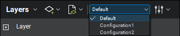 To switch from one configuration to another, select the desired configuration from the dropdown menu on the Layers panel toolbar. Configurations are listed in the order in which they were created.