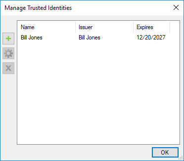 Add Trusted Identity. - In the Windows Open dialog, browse to the location of the saved .cer file and open it. Revu automatically adds it to your list of trusted identities.
