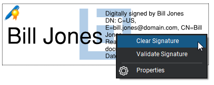 To clear your digital signature, either permanently or in order to make any needed changes and reapply it, right-click the signature and select Clear Signature.