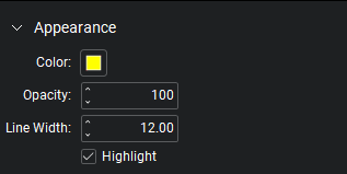 The appearance of the highlighter line is configurable, including its color, thickness, and opacity. Highlighter lines are, by default, fully transparent to let underlying content show through. This can be turned off (effectively turning the Highlight markup into a Pen markup).
