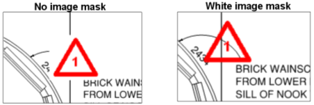 Mask Color: Set this value to make a certain color of the image completely transparent. Any pixel in the image that is the defined Mask Color will pass through any underlying colors on the PDF through the image so that the portion of the image will appear transparent. For example, setting this value to white when you have an image on a white background and are placing on a black-and-white PDF will let the underlying PDF content show through the background, as in the example below. Set the Mask Tolerance by pressing the up/down controls to fine tune the sensitivity in which the underlying content shows through the mask color for the image. Increasing this setting tends to give a smoother appearance so that the image appears more natural in the PDF.