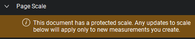 Changes made here generally affect all measurements on the drawing, including those made previous to the change, unless the page scale is protected. A warning message will appear at the top of the Page Scale section when this is the case.