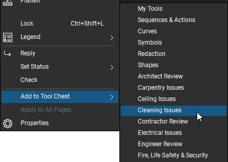 Right-click the new markup, then go to Add to Tool Chest and select your tool set.