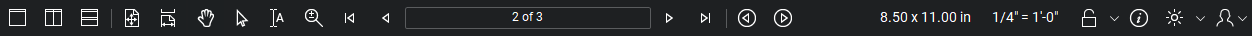 The navigation bar is located between Revu's main workspace and the bottom panel. The navigation bar enables efficient movement between pages and views in the main workspace. The navigation bar is separated into a left, center and right section.