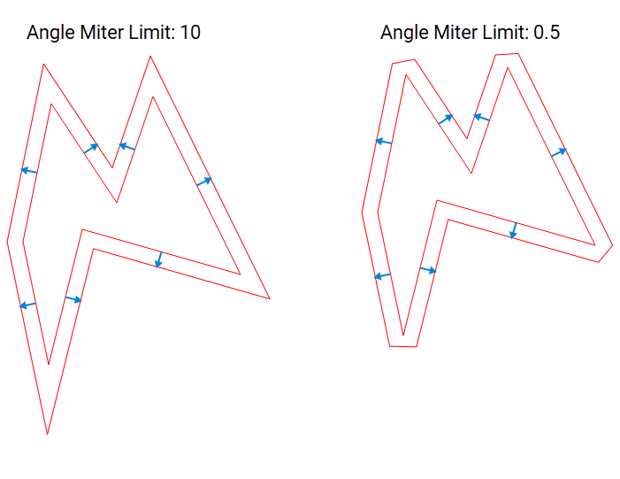 Angle Miter Limit: Controls how sharp points are in offset shape markups such as a polyline or polygon. The higher the number, the sharper the point.